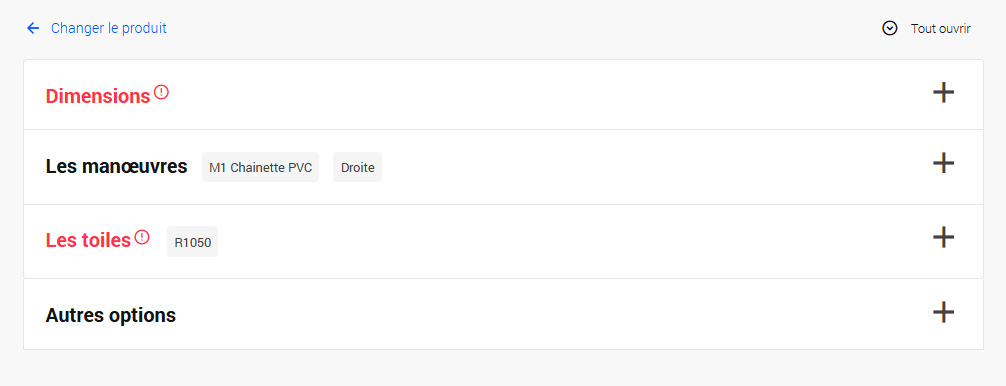 Pour configurer un produit, cliquez sur le "+" en bas de la zone produit :